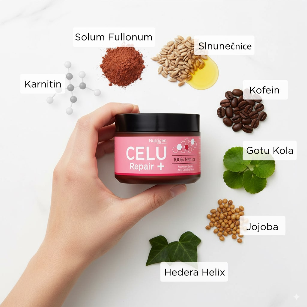Naneste bohatou vrstvu na stehna, hýždě nebo jiné problematické partie. Nechte působit 15–20 minut. Opláchněte teplou vodou nebo setřete vlhkým hadříkem. Používejte 2–3× týdně pro optimální výsledky. Doporučujeme kombinovat s krémem proti celulitidě Celu Repair